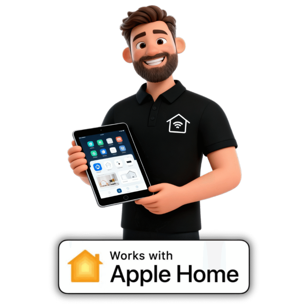 In Apple Home kun je je huis automatiseren via de Woning-app. Je kiest een trigger, zoals tijd, locatie, beweging of het openen van een deur, en koppelt hier acties aan. Zo kun je bijvoorbeeld automatisch verlichting inschakelen bij zonsondergang, de thermostaat aanpassen wanneer je thuiskomt of sensoren laten reageren op beweging. Met een HomePod of Apple TV als hub werken al je automatiseringen betrouwbaar en volledig automatisch.